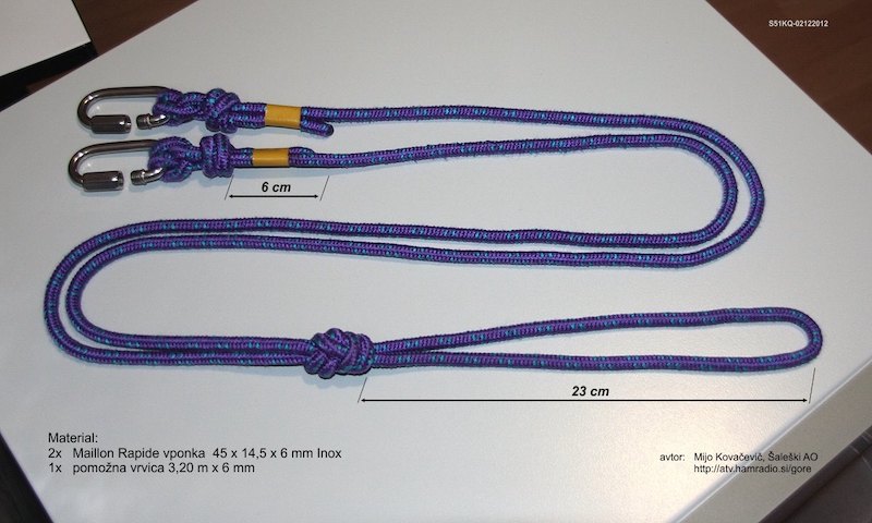 Prilagam skico svoje popkovine - uporaba na lastno odgovornost! Vendar pozor: varovalni vozli morajo biti dovolj - močno zategnjeni, da bodo opravili svojo funkcijo! Dolžina popkovine je pogojena tudi z višino tistega, ki jo bo uporabljal - naj ne bo predolga. Maillon vponke priporočam UIAA atestirane.