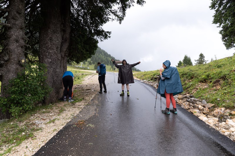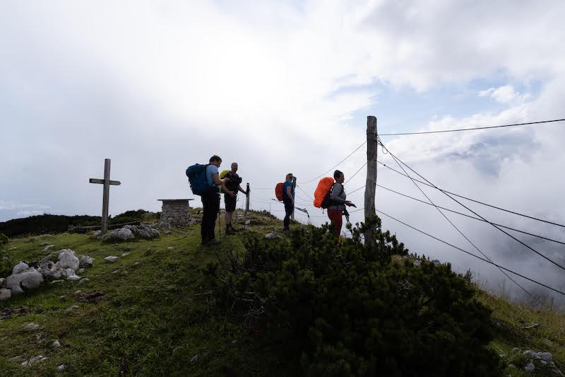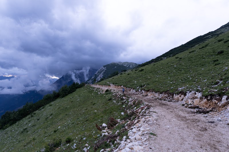 Prvi metri od Kriške planine so bili kar znosni, medtem je pa dež tudi ponehal. Meglice so se dobro razkajale naokrog, rado v teh vrhovih in višje smo bili, bolje se je kazalo na nebu. Bilo je sveže, preveč za ta čas v letu, zato dolgi rokavi niso smeli manjkati poleg palerine.