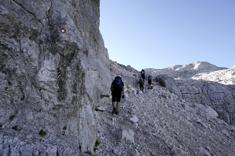 Tokrat smo se podali po Tominškovi poti, katera je bila lansko leto obnovljena tudi s strani markacistov našega društva. Lepa in urejena pot, primerno varovana in tudi označena. Še pridemo. Seveda marsikdo v teh dnevih rine na najvišji vrh. Na poti smo srečali tudi kolege iz Makedonije, večja skupina z enim ciljem, na Triglav. Ampak naša pot ni šla proti njemu…