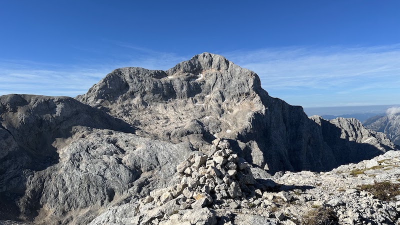 Vrh brez križa, kup kamenja na kupu in skrinjica. Razgled na vršace naokrog, najvišje od blizu in daleč. Kratko, a sladko, povratek po isti potki, ampak ne proti domu. Rahlo sekanje poti, da smo prišli na markirano pot do Cmira. Le ta je bil oddaljen uro in pol hoje stran.