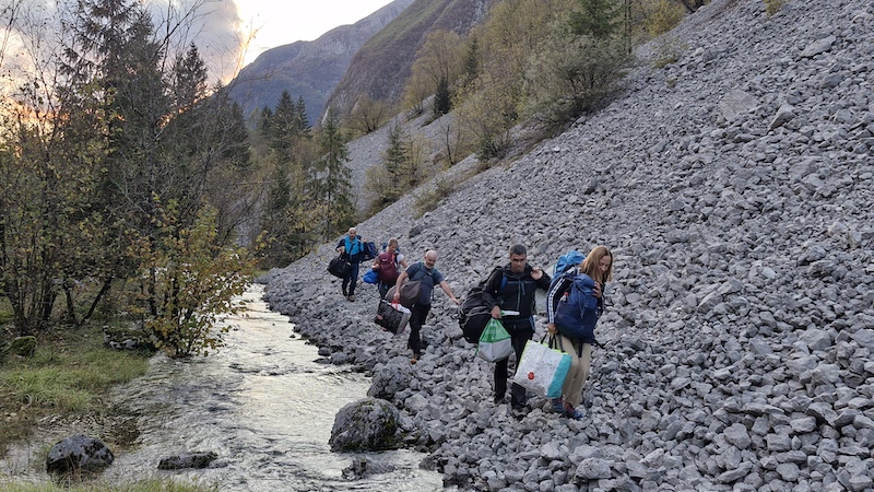 Večina se nas je zbrala že v petek popoldne, proti večeru, vendar so nam nedavne padavine precej zagodle zadevo in nam poplavile cesto do hiše, kjer smo bili nastanjeni, zato ni šlo drugače, kot da gremo tja po planinsko, peš, s prtljago in živežem.