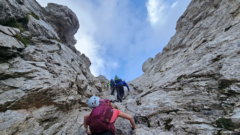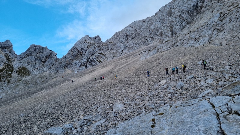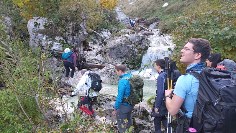 Sobota je bila namenjena turi. Plan je bil Bavški Grintavec, seveda je vreme botrovalo temu, da če ne gre drugače, se prilagodimo razmeram. Pot nas je najprej vodila čez tokrat mokre struge. Strmine so bile na začetku znosne, kasneje pa kar zajetne. Vmes smo večkrat prečili potok in morali biti precej previdni, da se nismo zmočili.