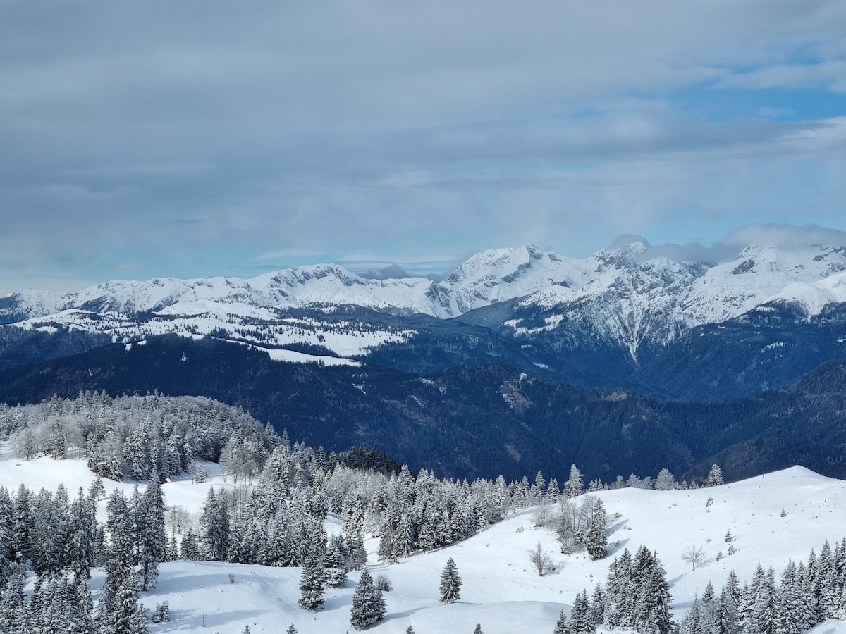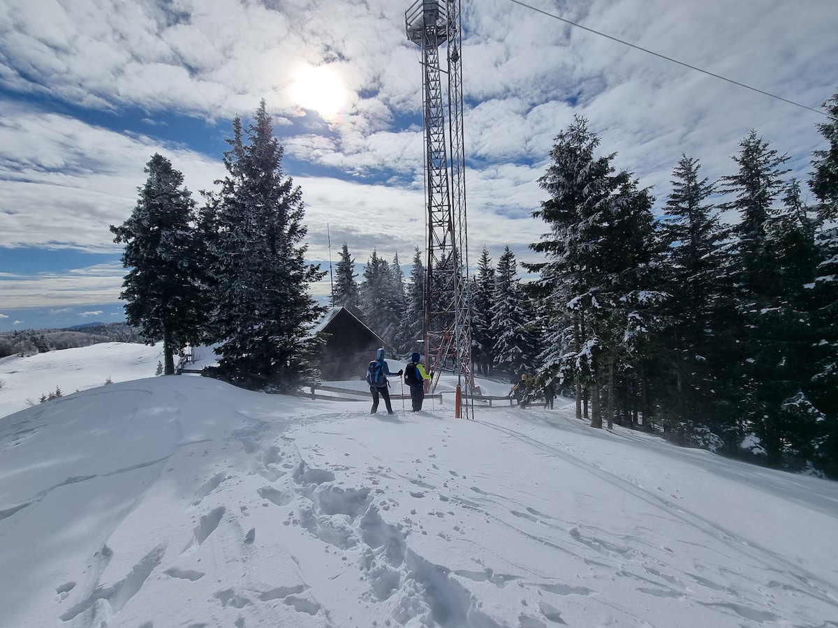 Z vzpenjanjem nas je počasi pozdravljala vse bolj planotasta pokrajina, odeta v deviški snežni plašč. Švignili smo mimo jame Vespa ter se najprej povzpeli na Špic, ki leži le streljaj od Doma na Menini planini, kjer smo si nato privoščili daljši odmor.